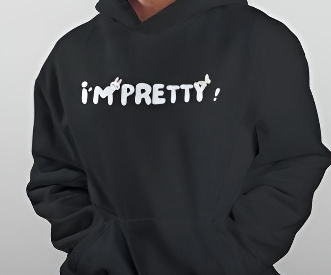 A cozy statement hoodie with a sweet front text and an adorable bow graphic on the back. Designed for comfort and cute vibes, perfect for casual wear and aesthetic outfits.